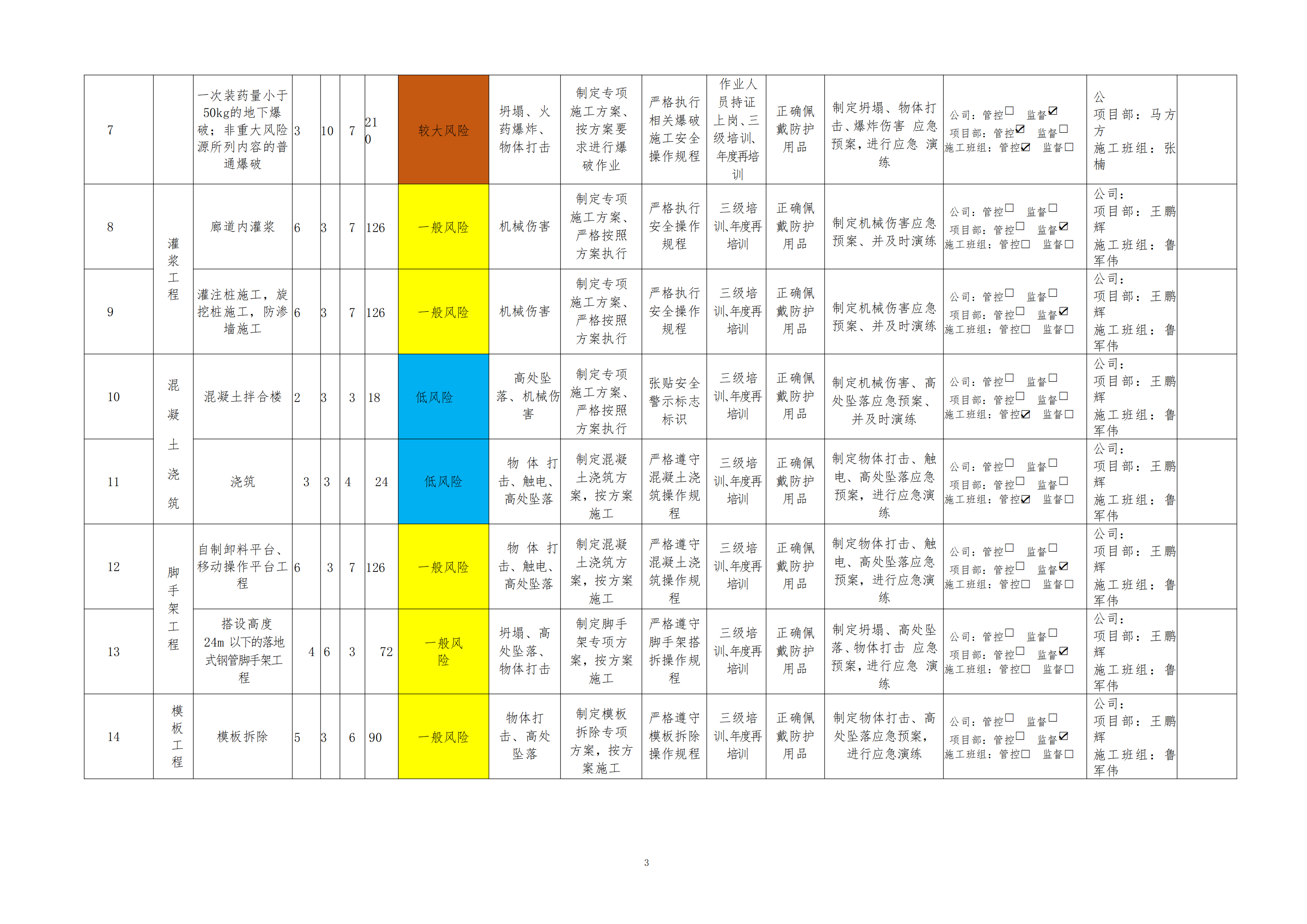 欒川縣新建水庫一期工程施工一標段危險源風險分級管控清單(7月)
